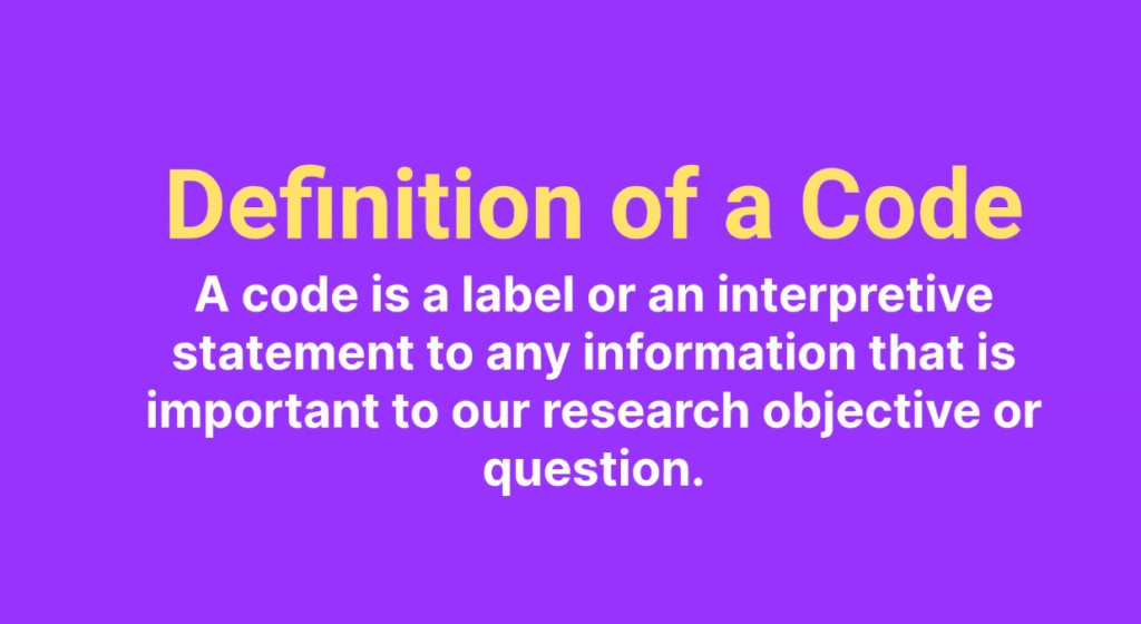 So a code is simply a label or an interpretive statement to any information that is important to our research questions or objectives.
