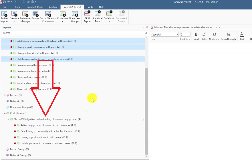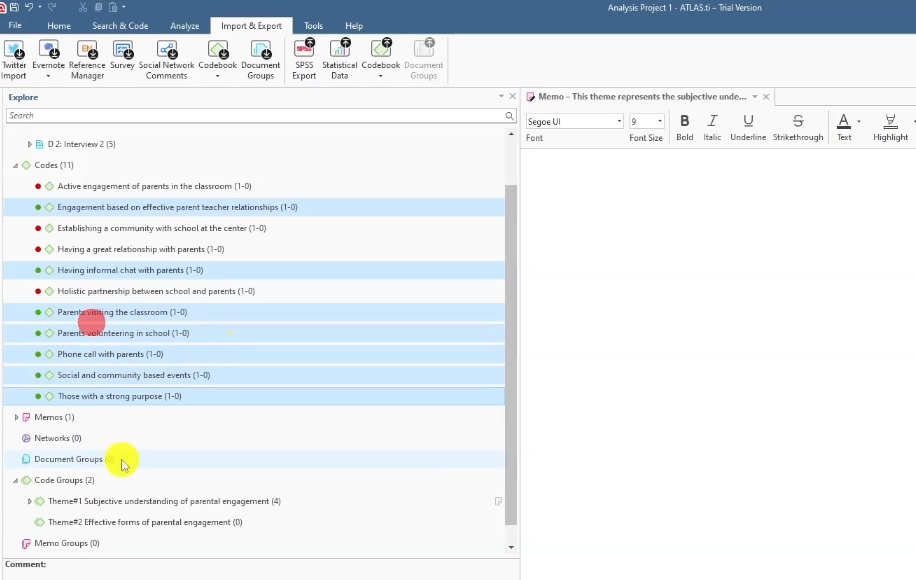 Basically that’s how we code and move from codes to themes in Atlas.ti.