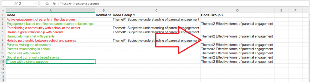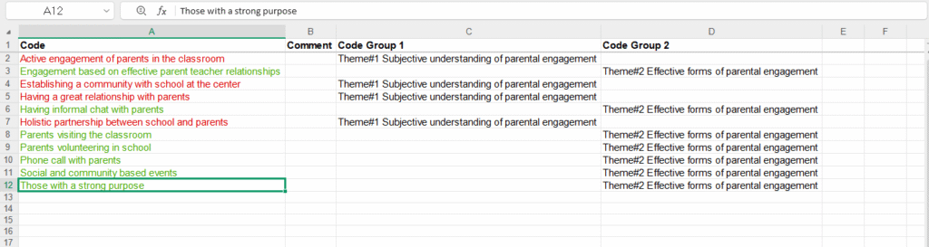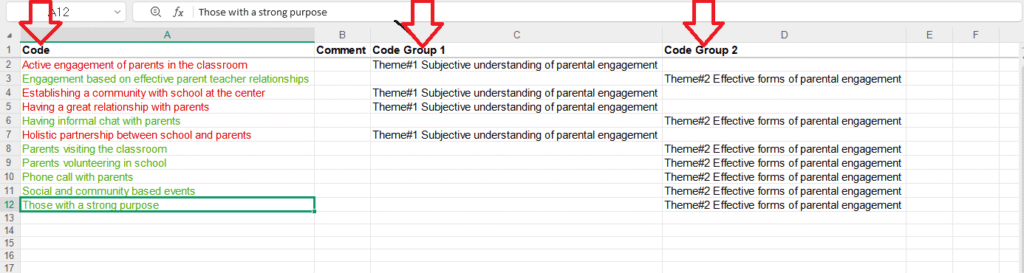 You remember I marked the codes that came from the first question as red meaning the codes that are marked as red are under theme one.