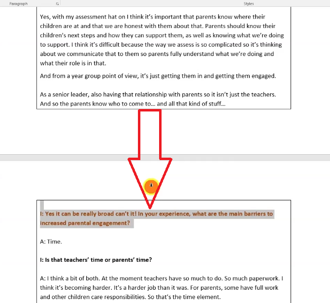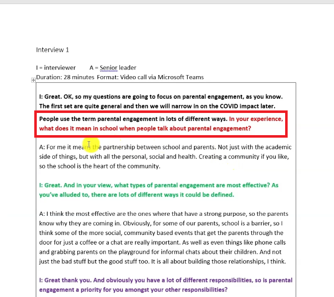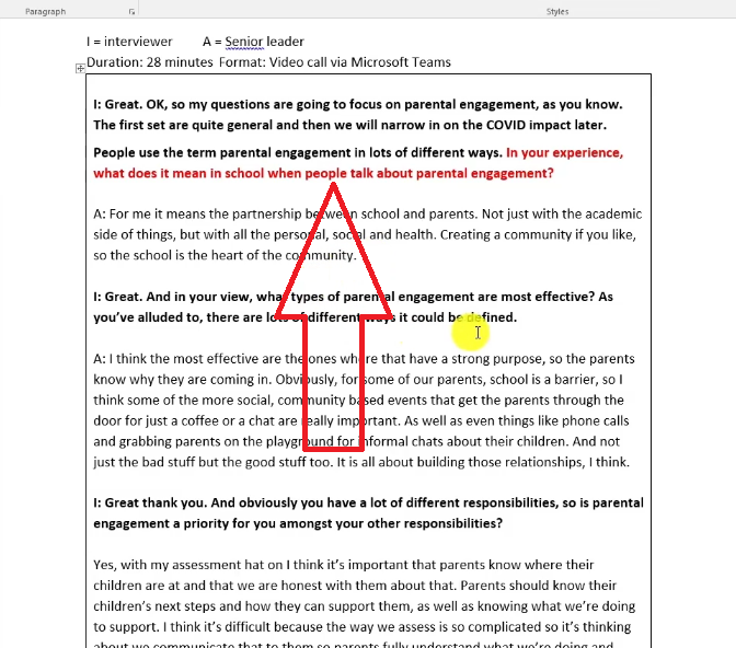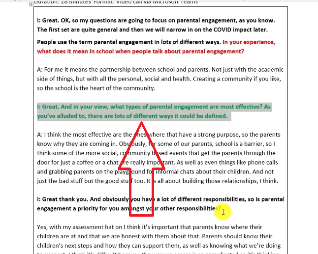For example they were asking, in your experience what does it mean in school when people talk about parental engagement?