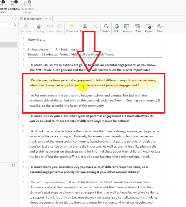 Basically coding involves interpreting quotes from the participants in ways that make sense to our research objectives.