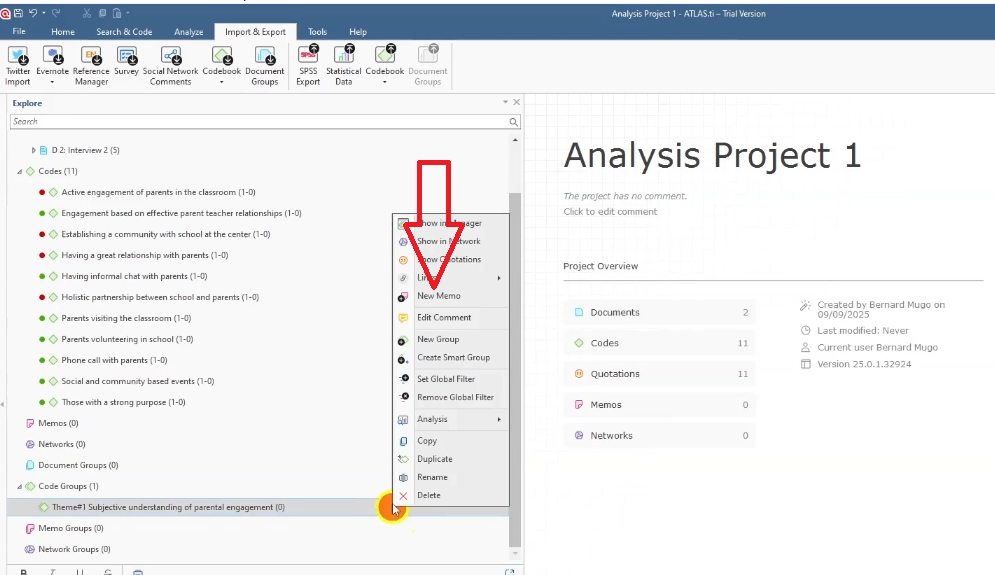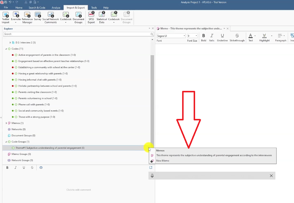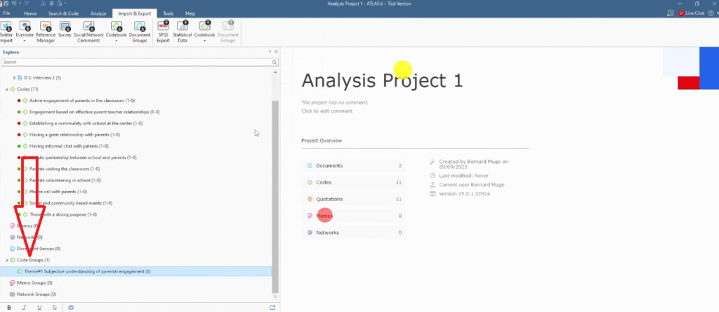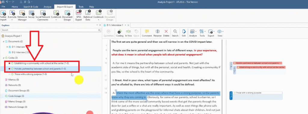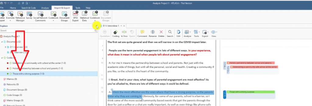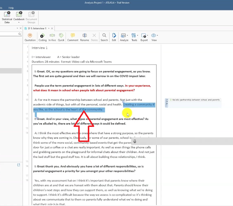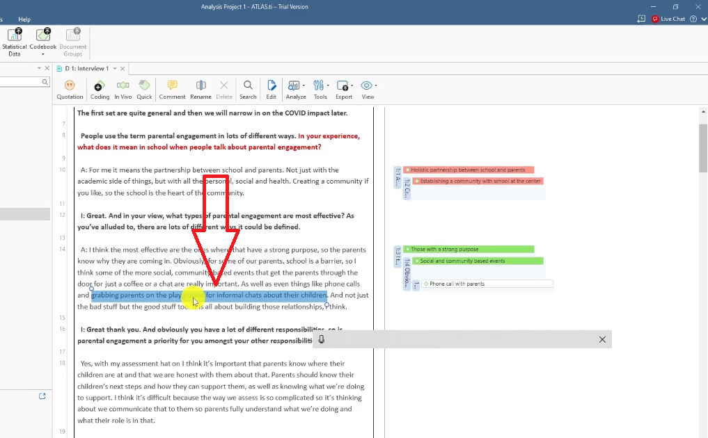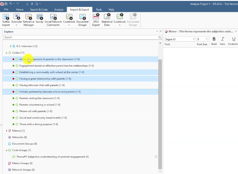 Basically that’s how we do coding or we go from interview transcripts all the way to getting themes in Atlas.ti.