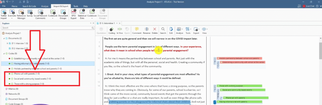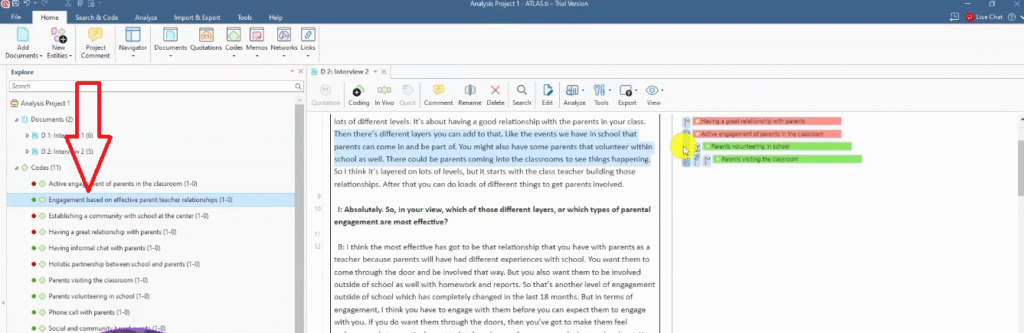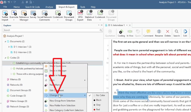 And you can also see in atlas.ti that the codes are getting these kind of color codes automatically.