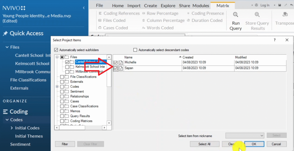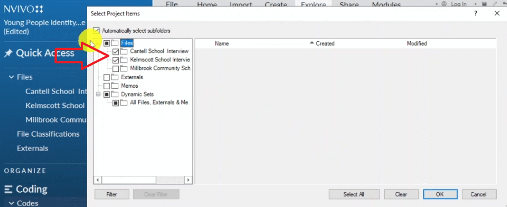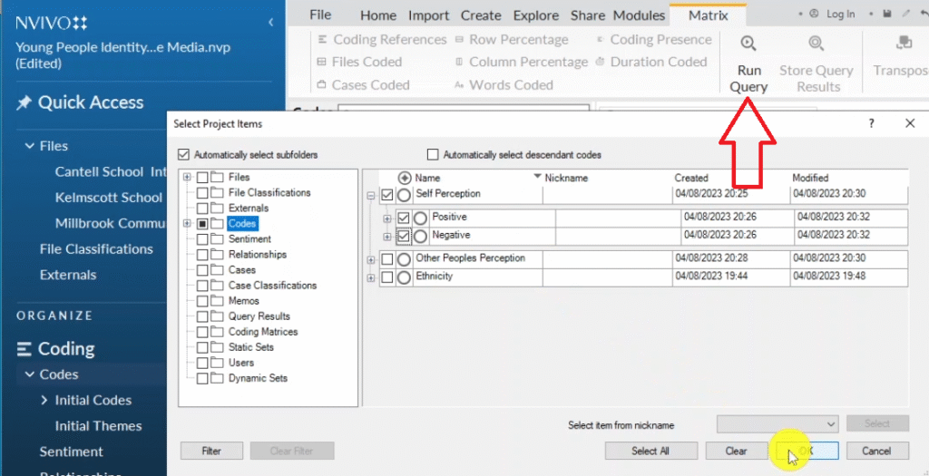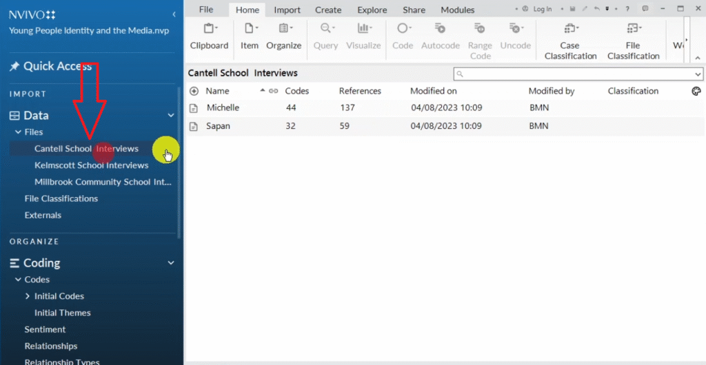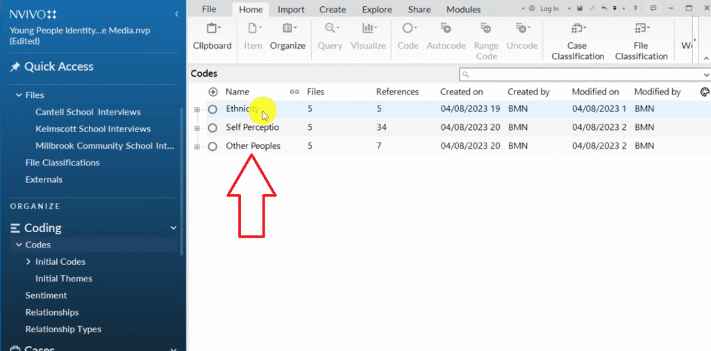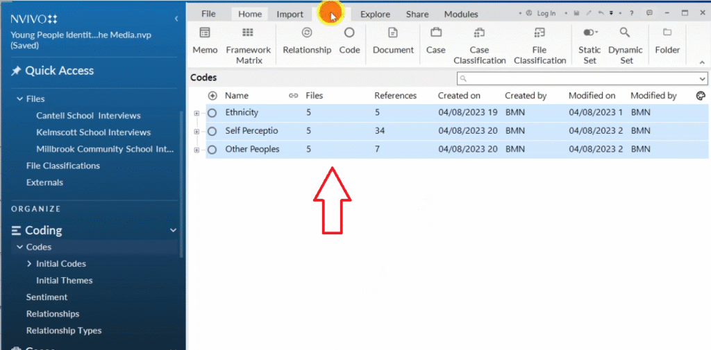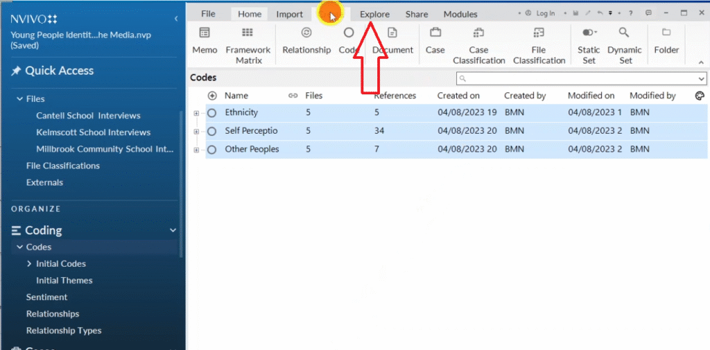In N-Vivo, when conducting thematic analysis we only use the basic menus files and codes.