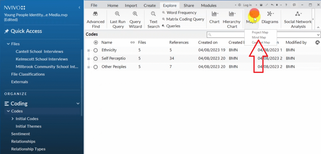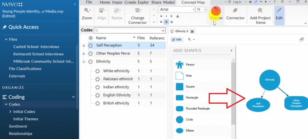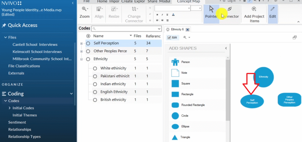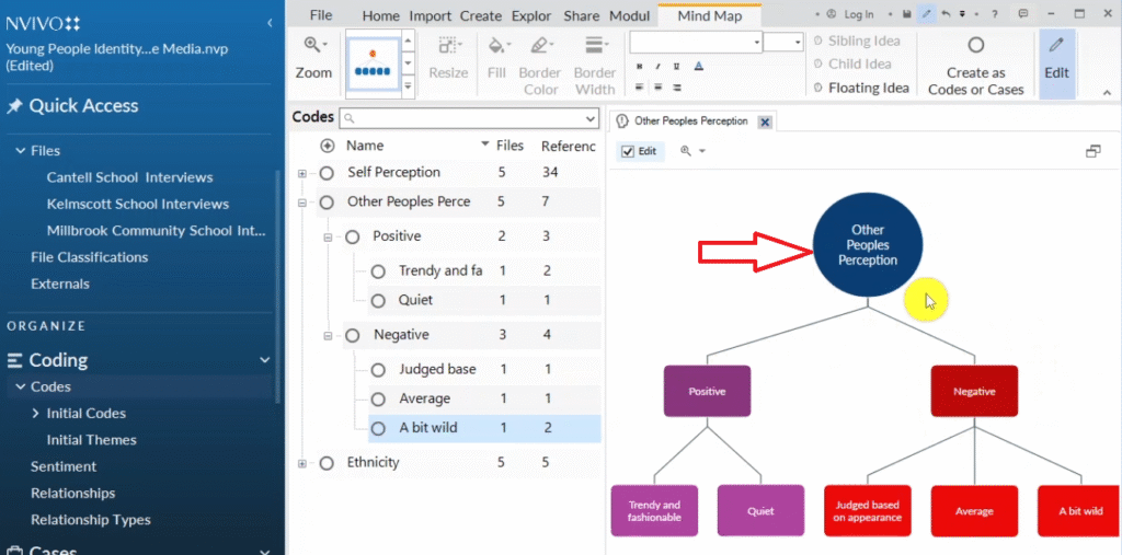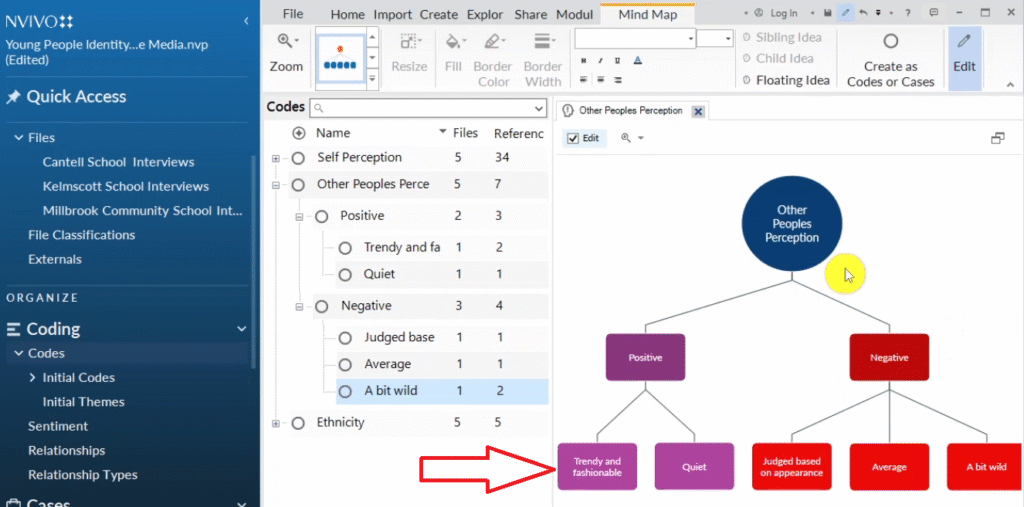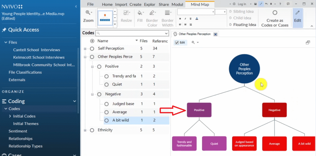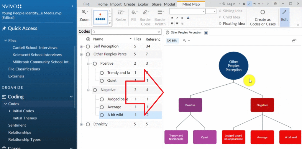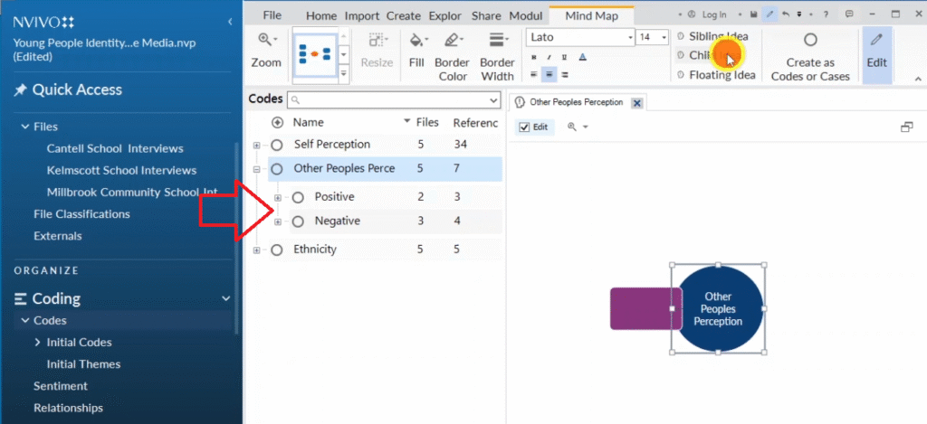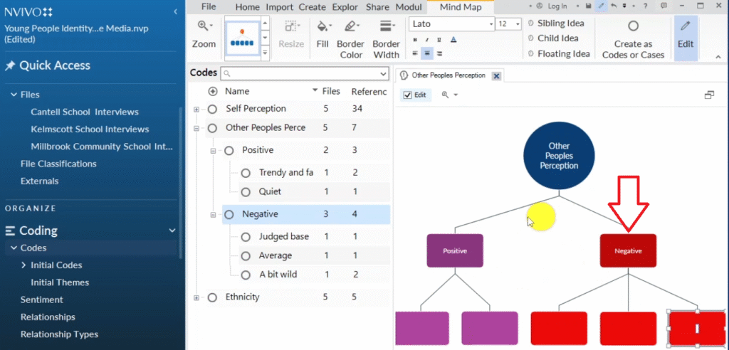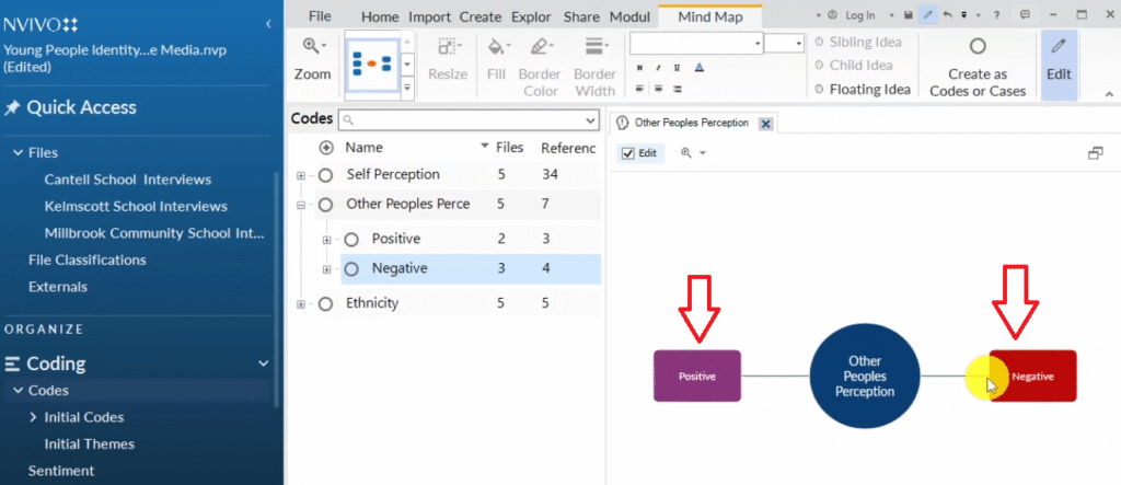 So that’s just an example of how you can use N-Vivo to show the link or the relationship between different ideas or different themes, and even to develop thematic maps.