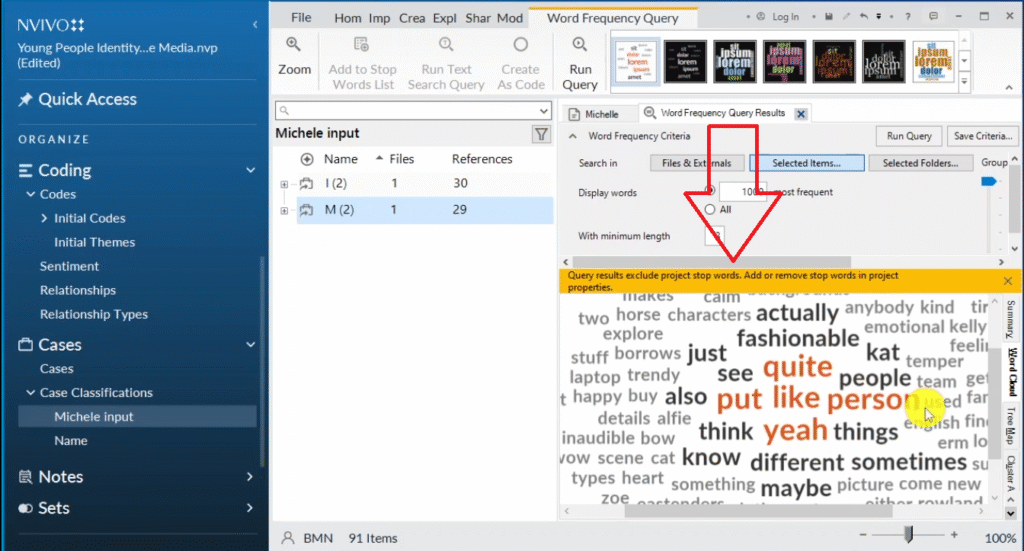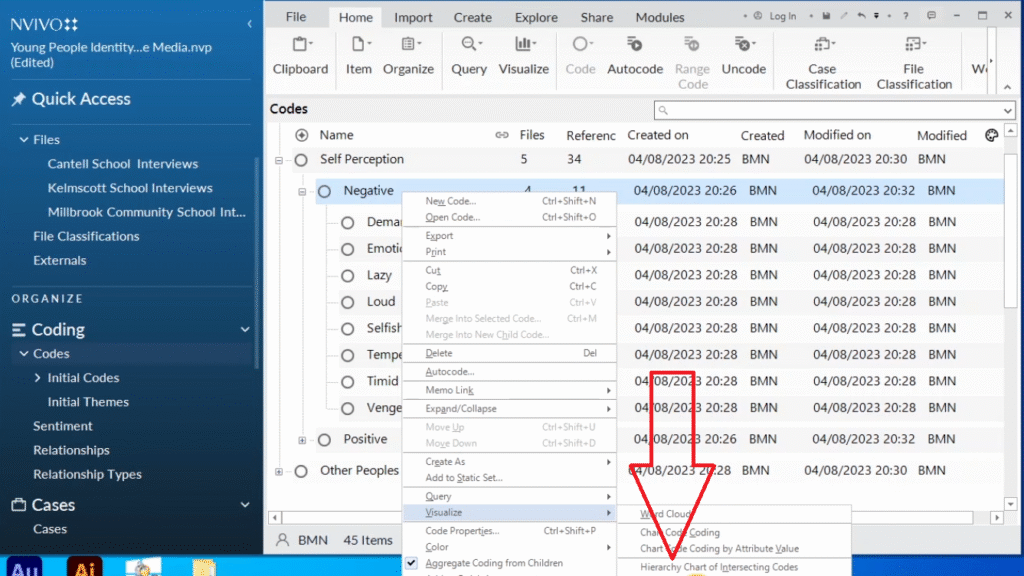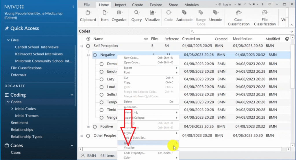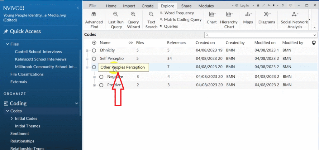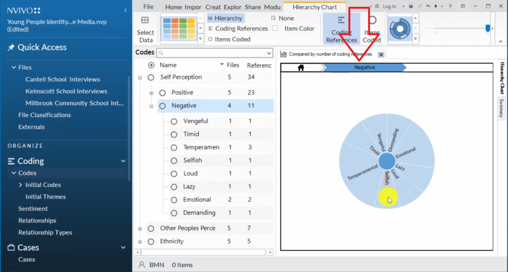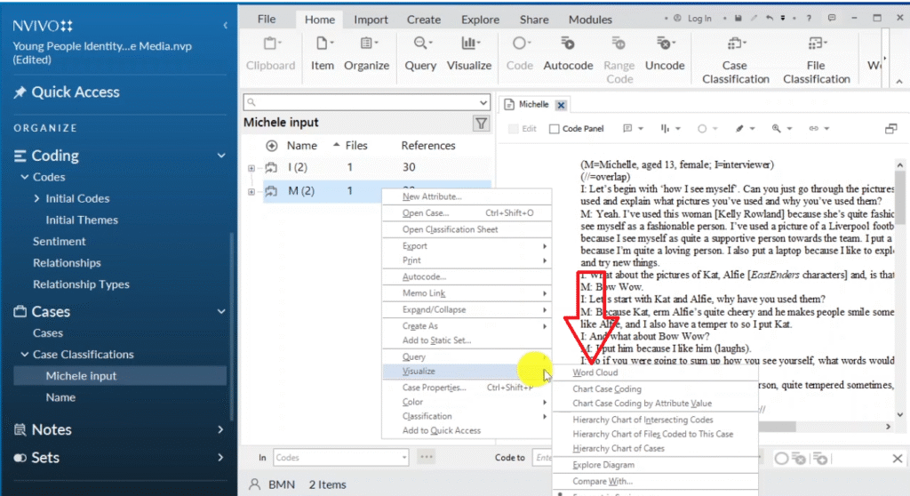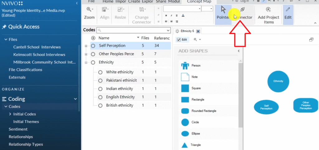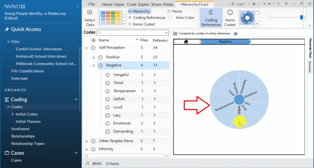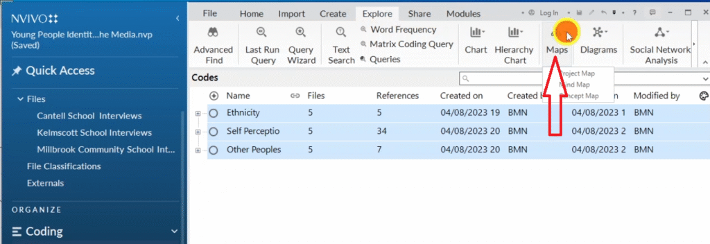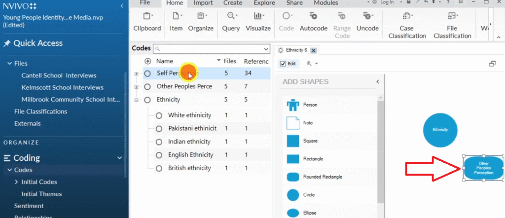 So that’s just an example of how you can use N-Vivo to show the link or the relationship between different ideas or different themes, and even to develop thematic maps.