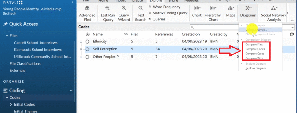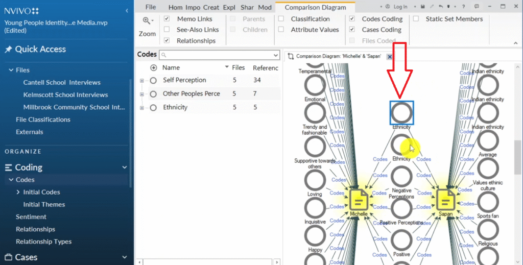 Another way to visualize your data in N-Vivo is to use comparison diagrams to compare code.