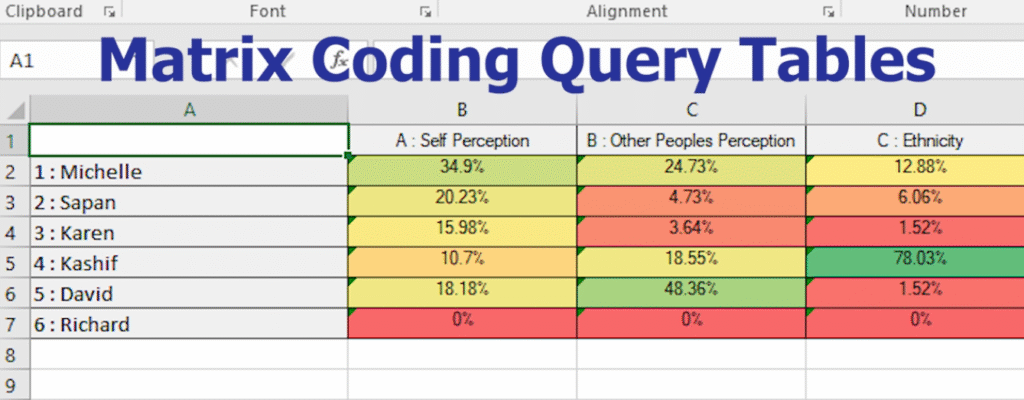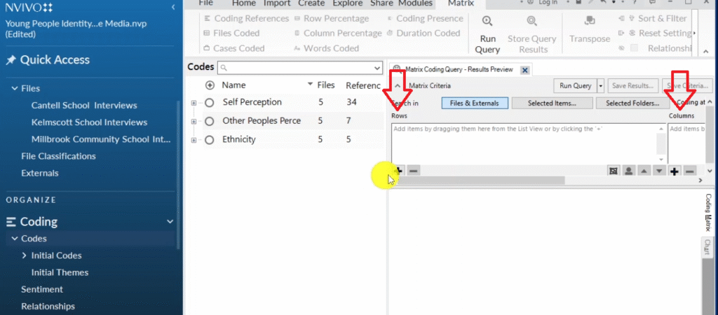 The final way you can use to visualize your data is through the use of Matrix coding query tables.
