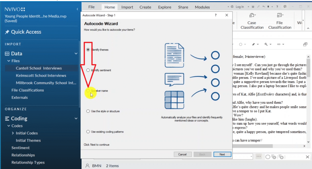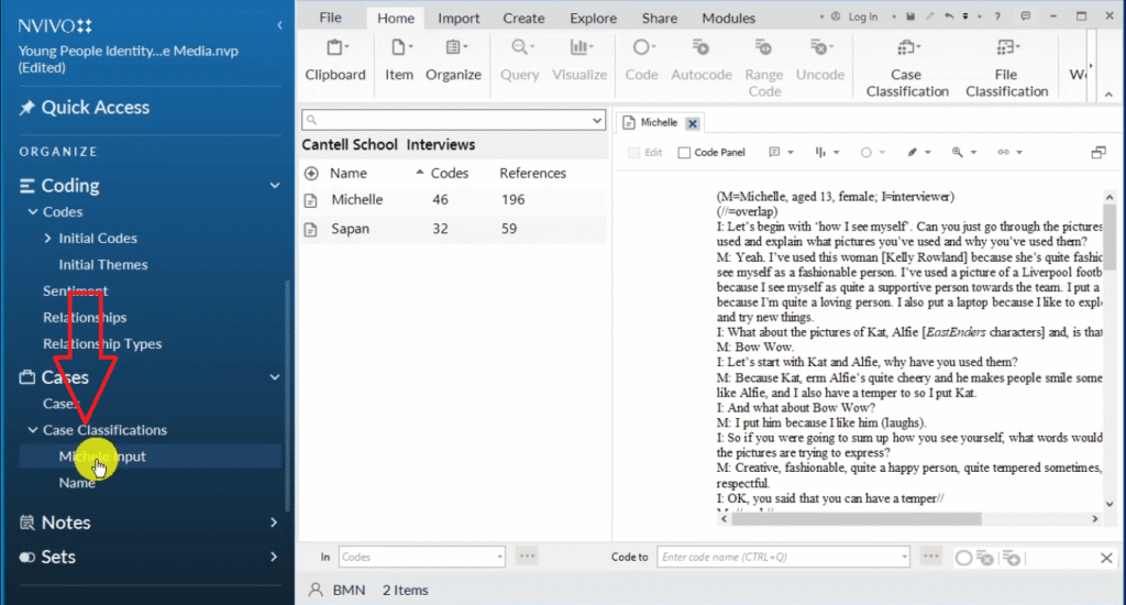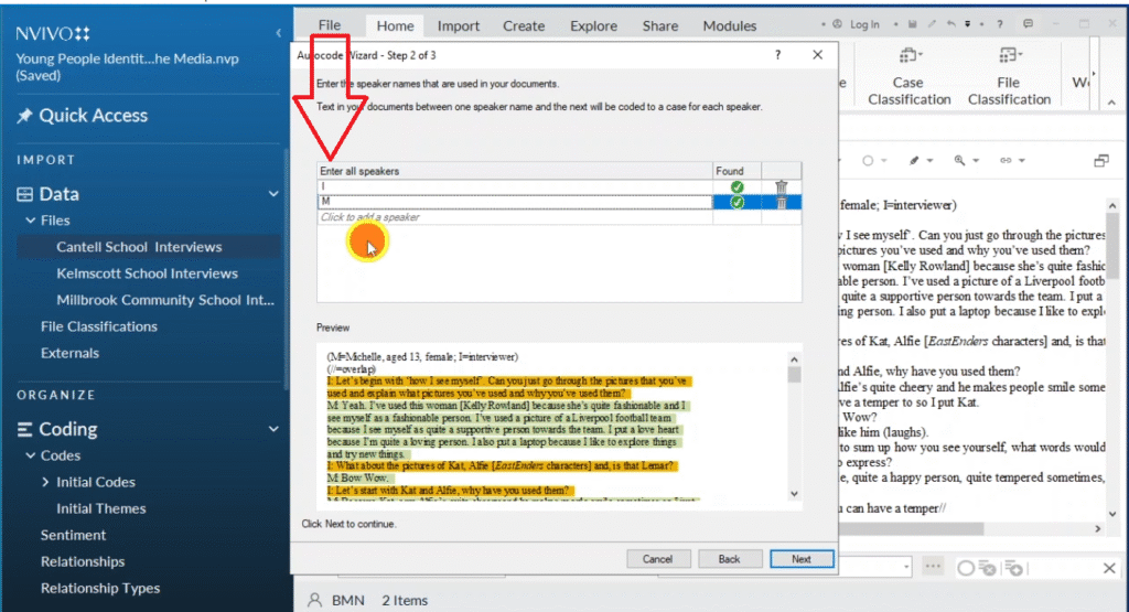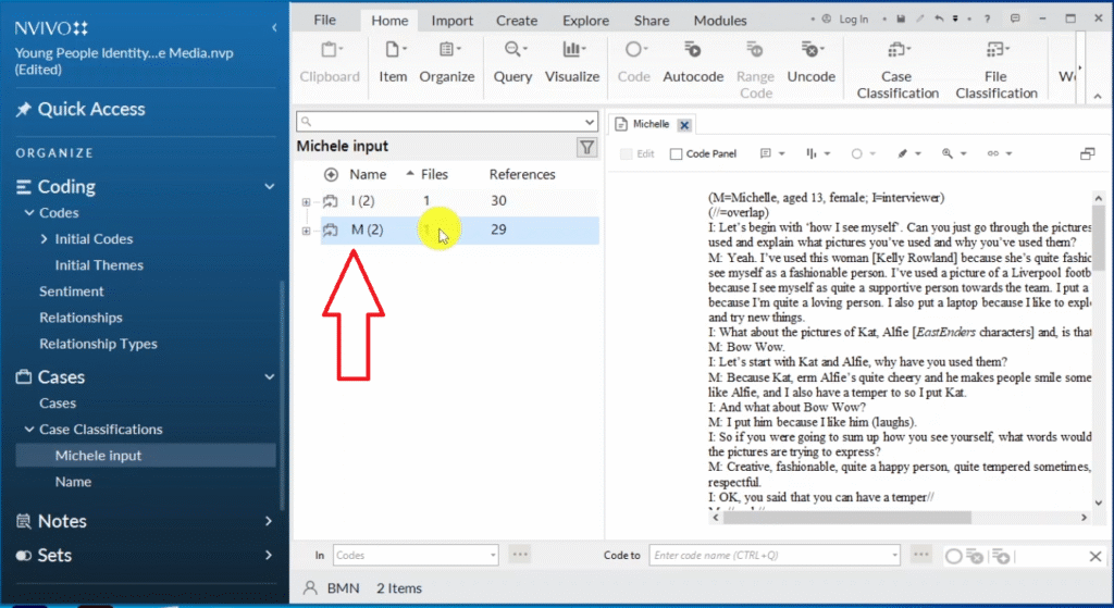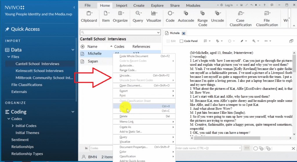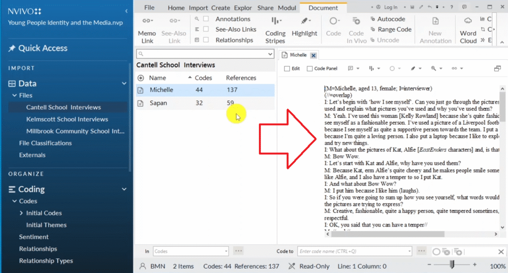 I go and open one of my transcripts by double clicking on it and then we start coding.