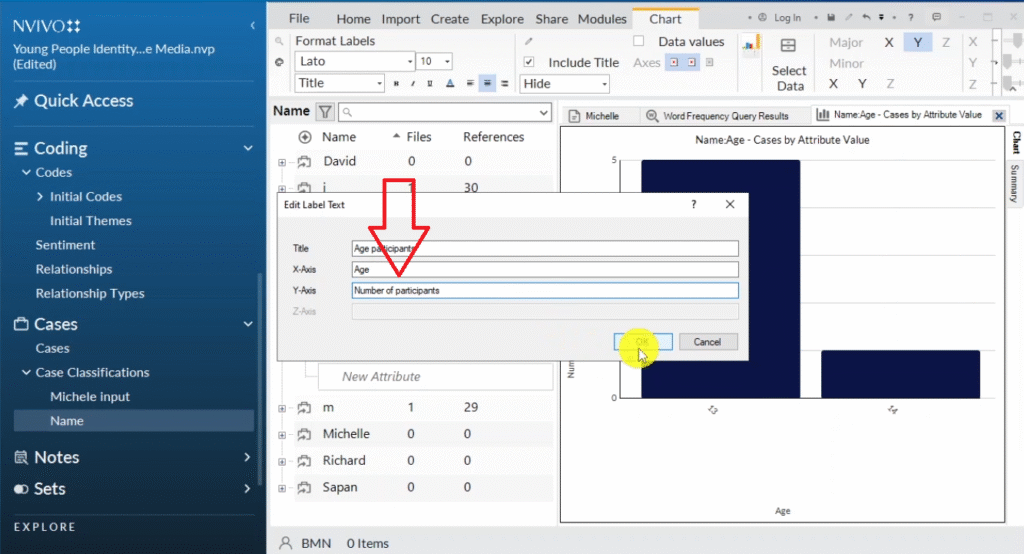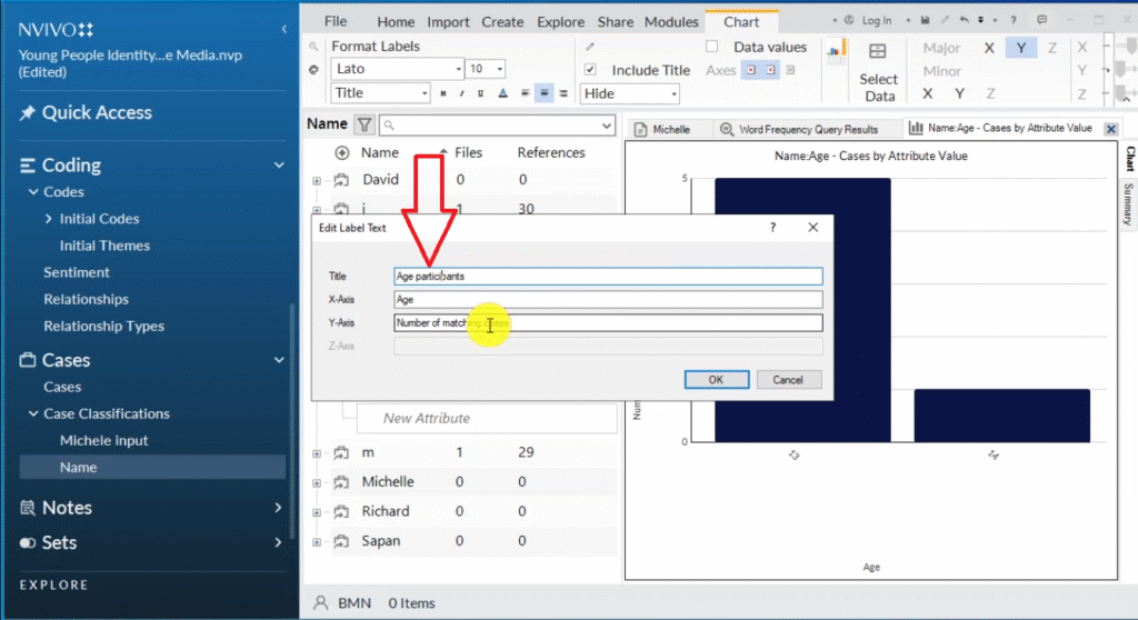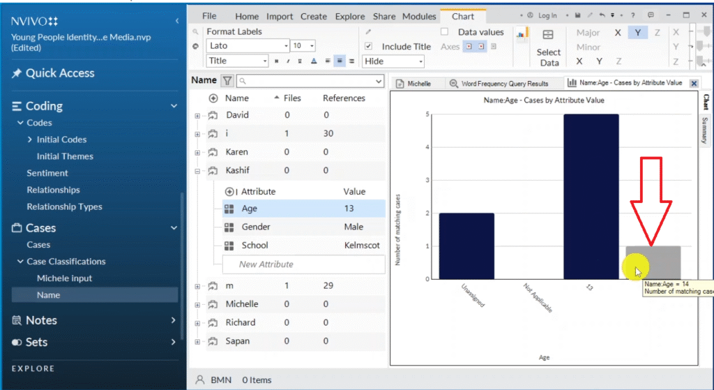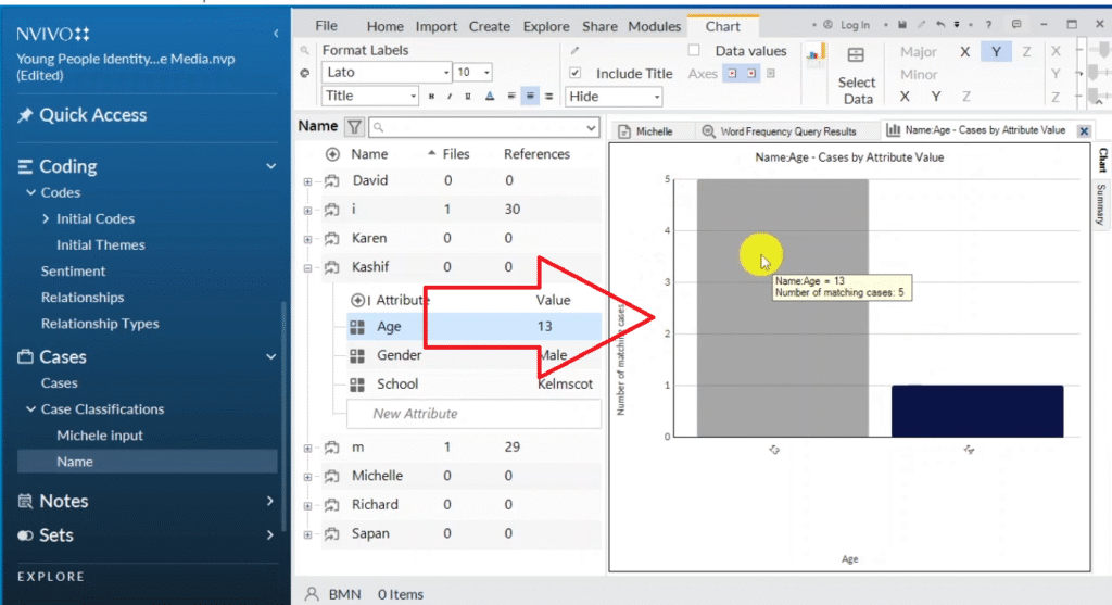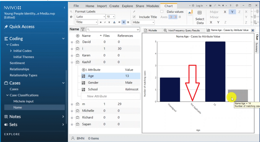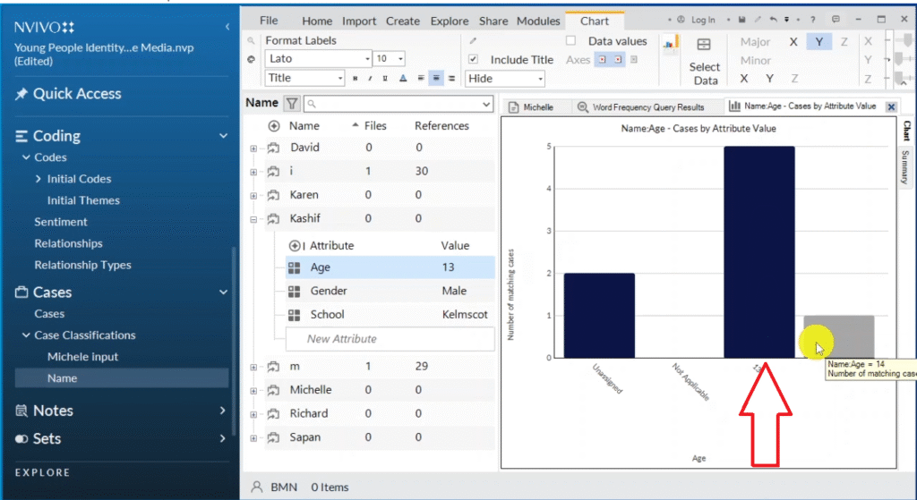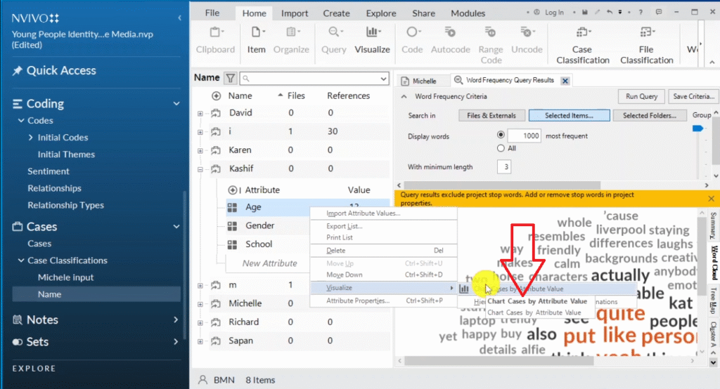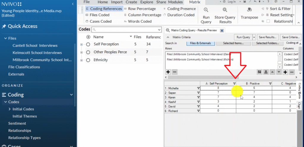 That is the final way of visualizing your data in N-Vivo, which is coming up with a matrix coding query table to represent the number of words coded to each participant in a given major theme.