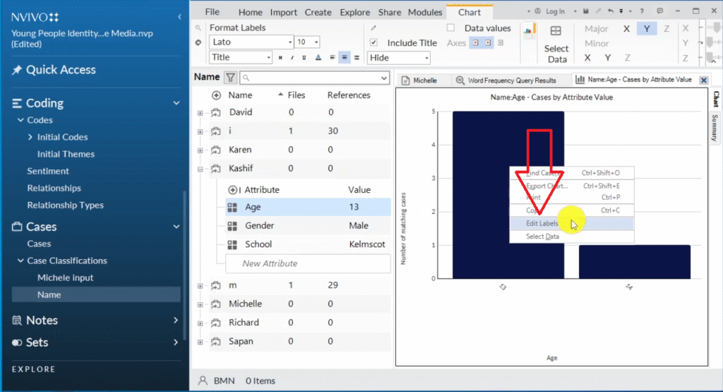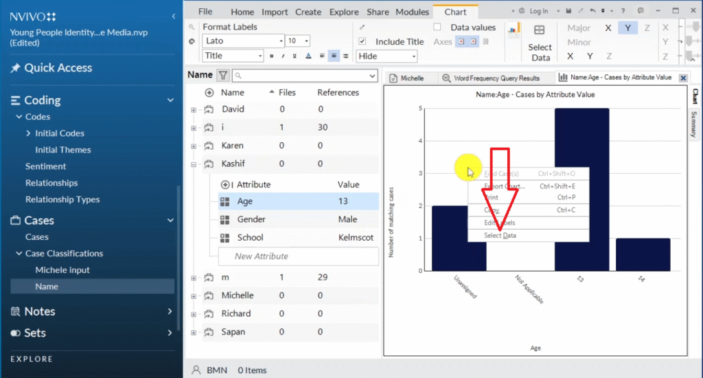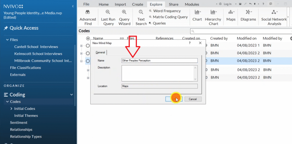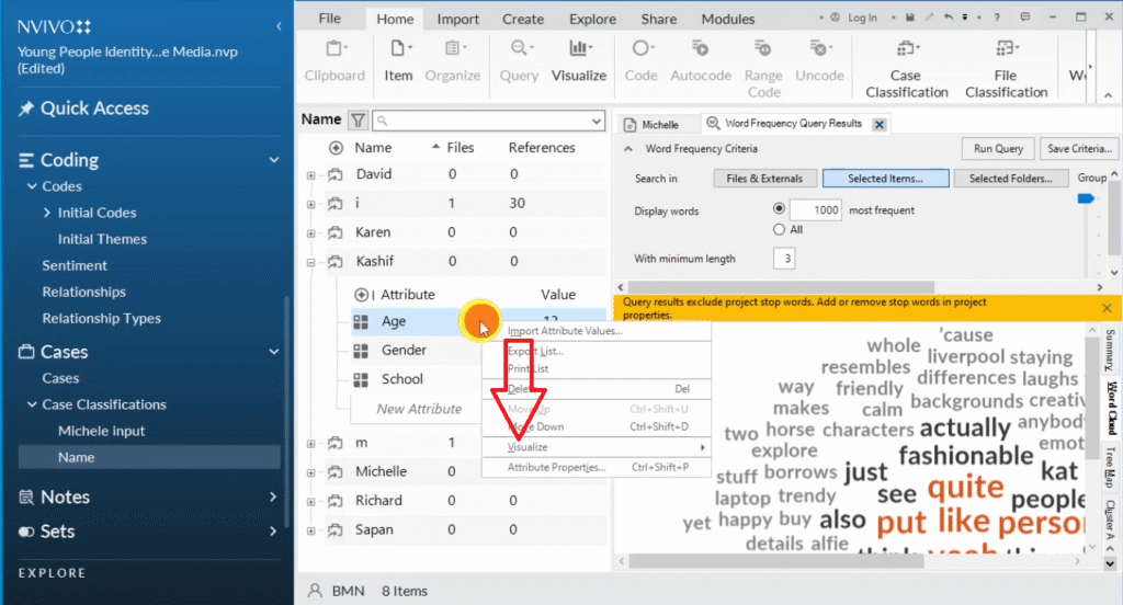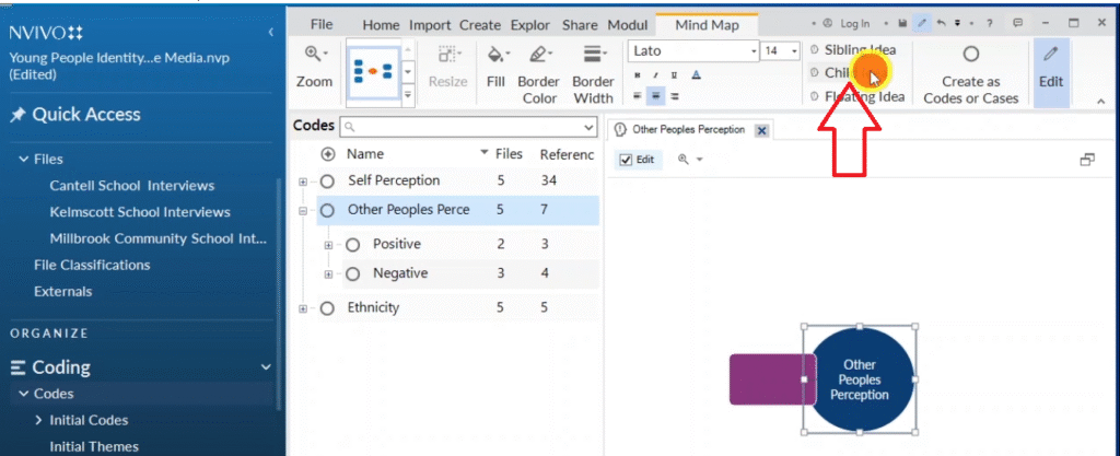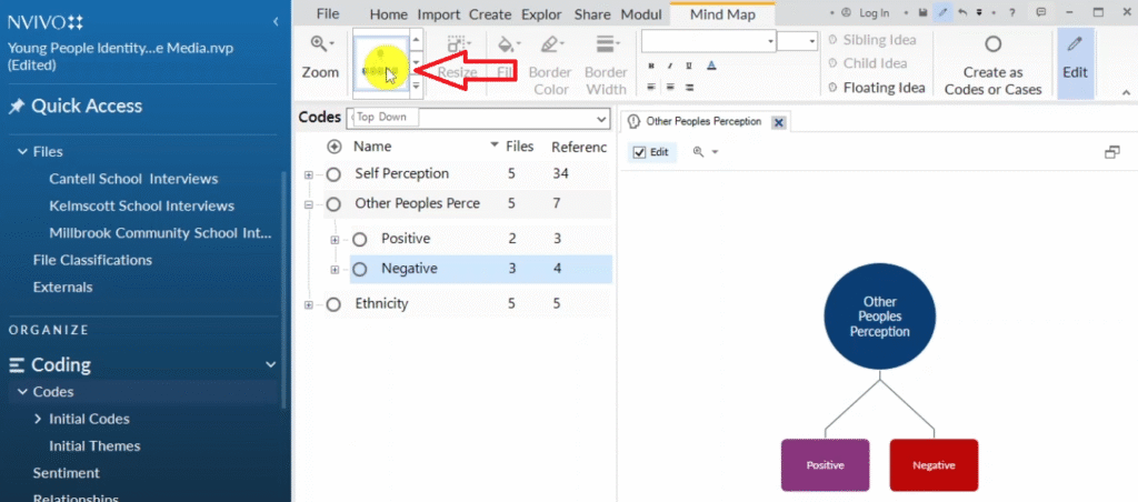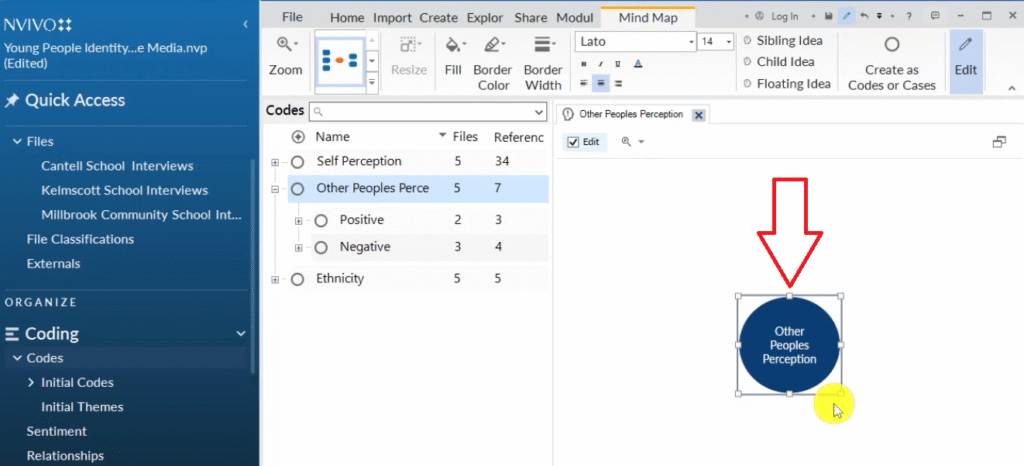 This is another approach to visualize data in N-Vivo 14 through the use of a mind map.