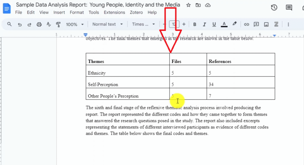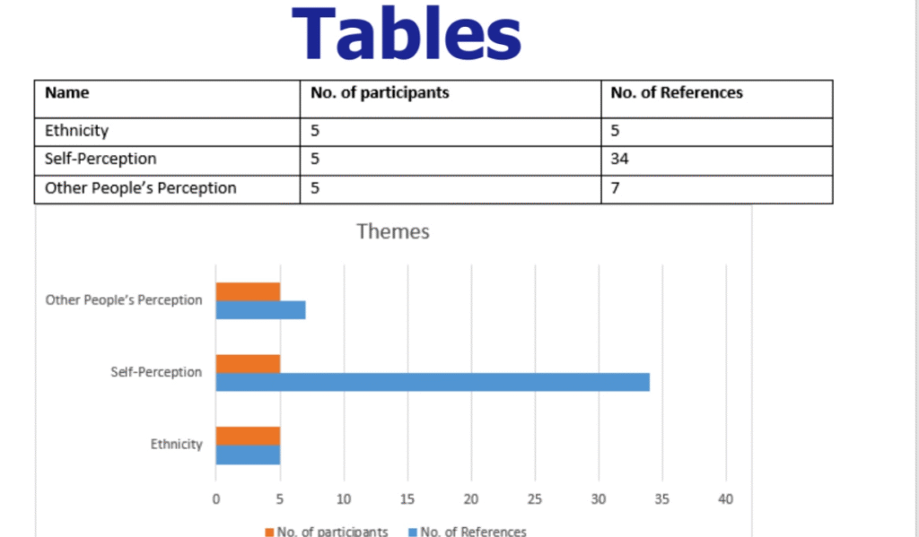 I’m on codes and I developed these major themes including ethnicity, self perception, and other people’s perception.