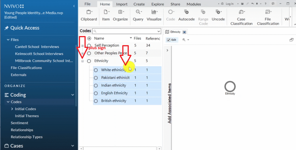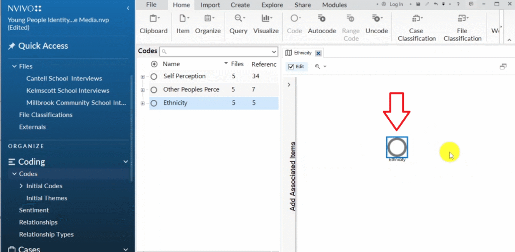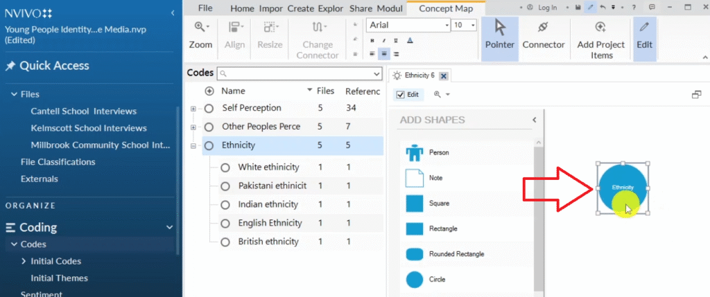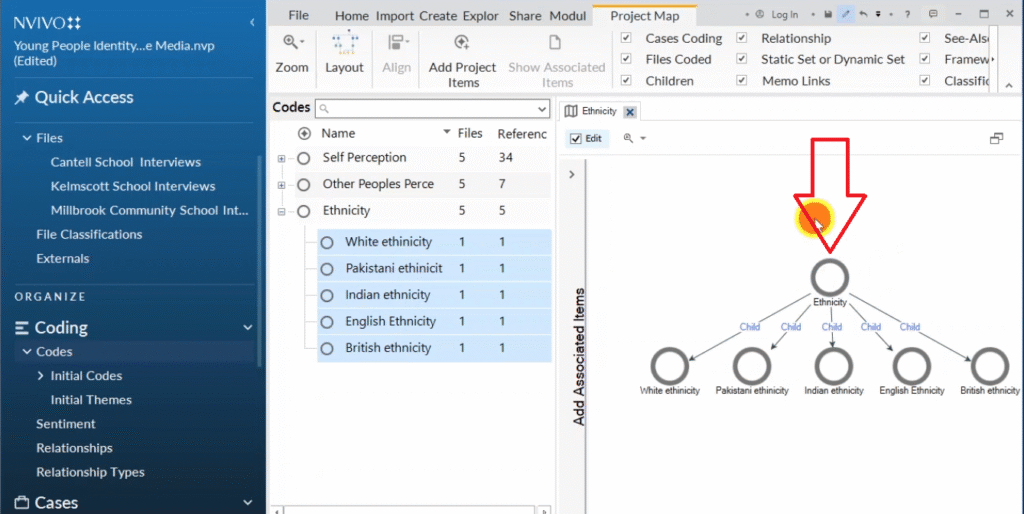 Now I want to go to one of my major theme of ethnicity, and I drag and drop it inside the project map.