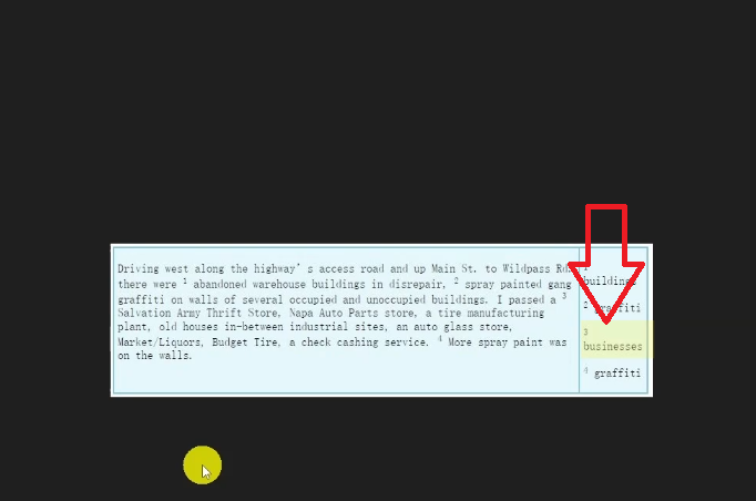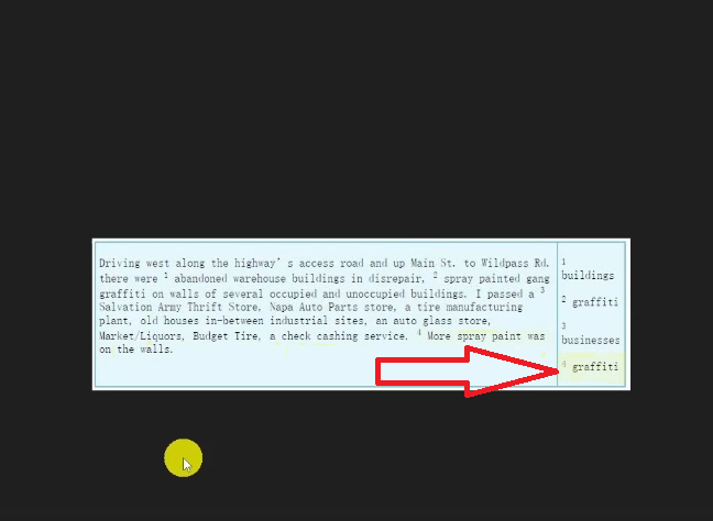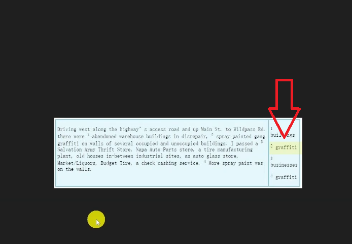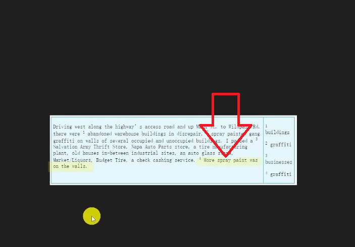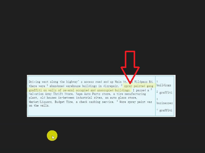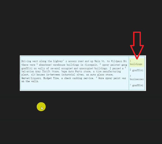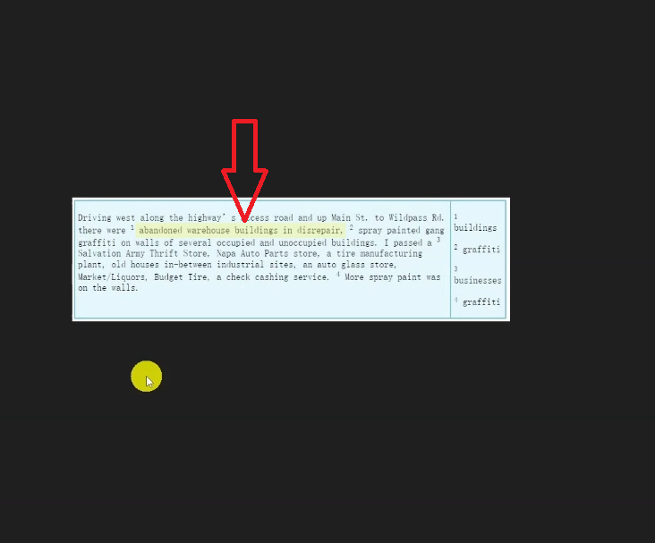 If you read that paragraph, you’ll see that there is this sentence which is labeled number one that reads abandoned warehouse buildings in disrepair.
