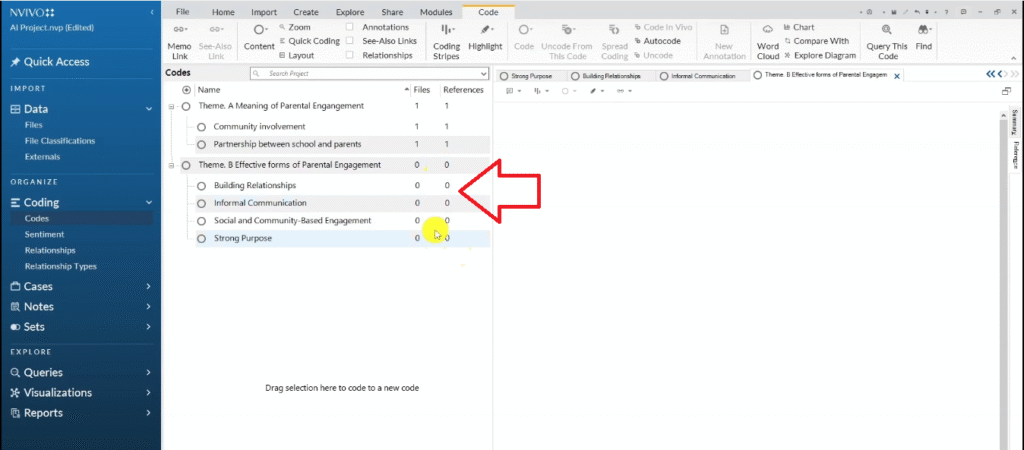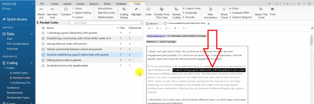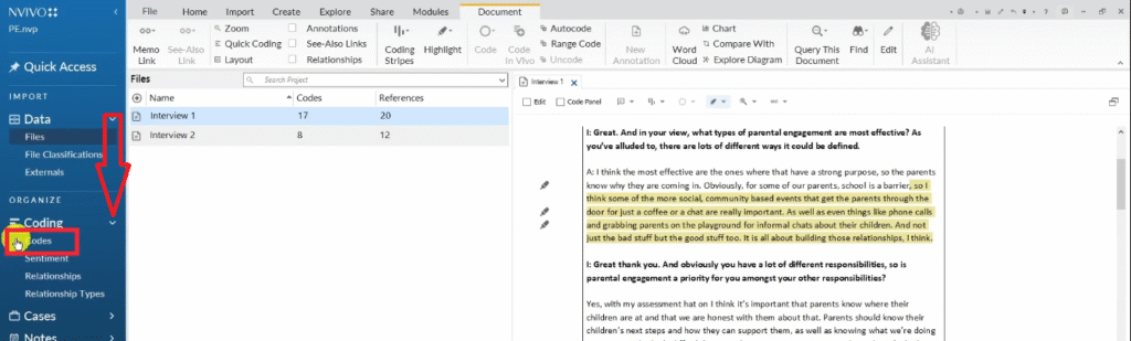 So if you go to the code section in N-Vivo, click on the arrow pointing to the right.