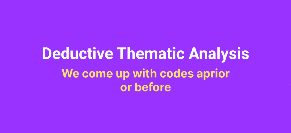 In contrast, deductive thematic analysis is where we come with the codes a priori or before.